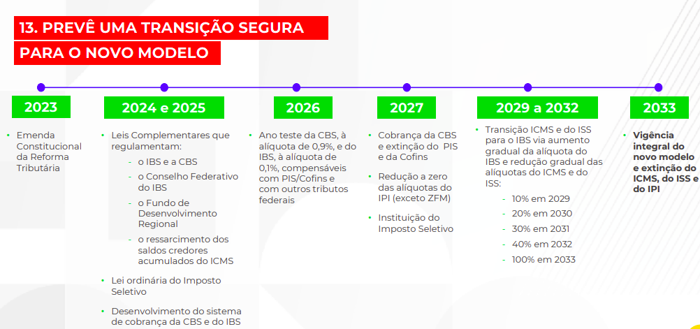 Calendário das ações da Reforma Tributária